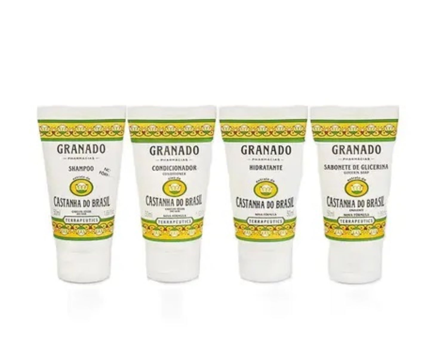 Embalagens em tamanho ideal para levar no nécessaire. Produtos enriquecidos com extrato e óleo de castanha do Brasil, que tem ação hidratante. Shampoo e condicionador que limpam, condicionam e hidratam os fios; sabonete líquido formulado com glicerina vegetal, e hidratante corporal de rápida absorção que amacia, perfuma e suaviza a pele.