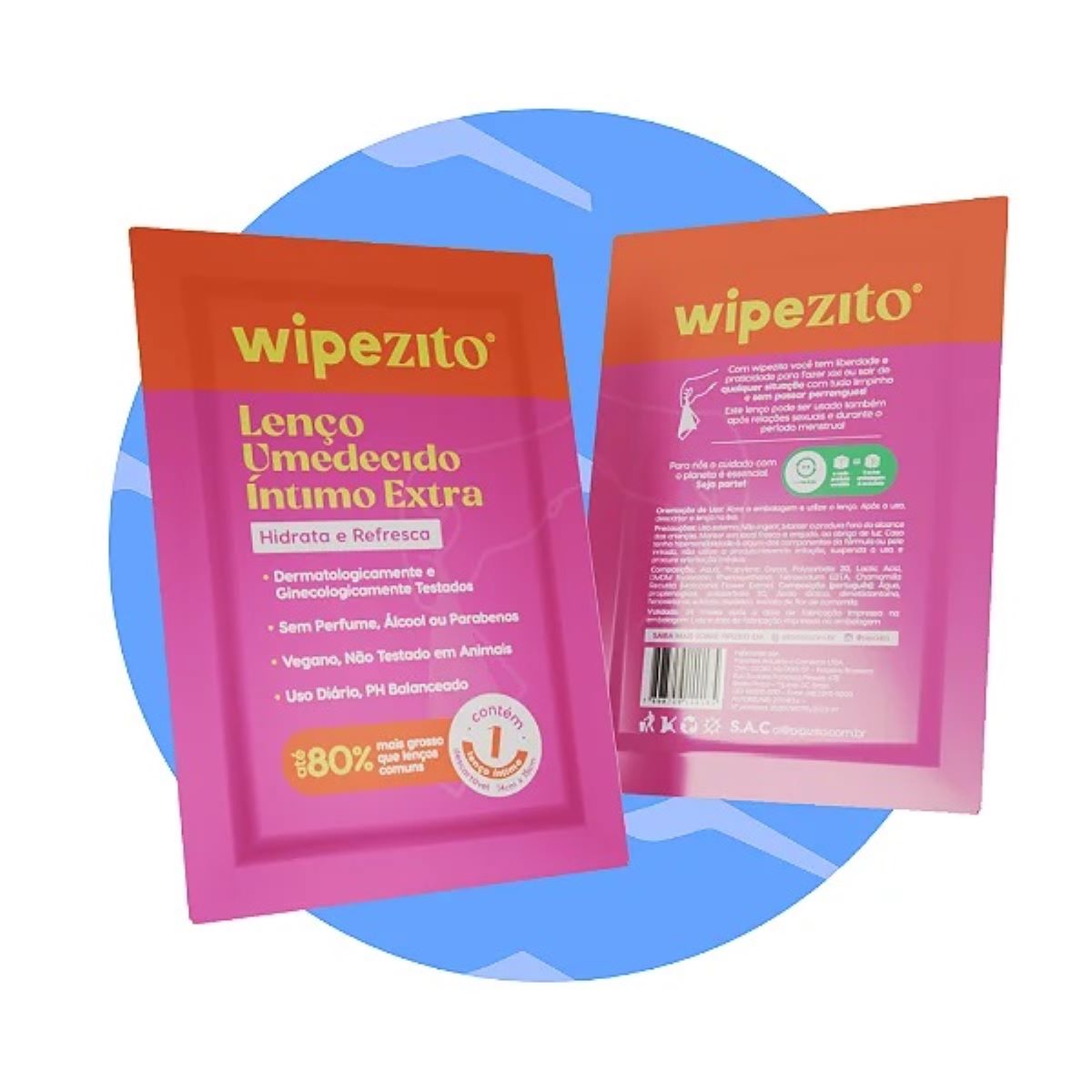 Wipezito é o Lenço Umedecido Íntimo Extra Unitário da Pipizito. Extra porque ele é até 80% mais grosso que os lenços umedecidos comuns. Perfeito pra você levar junto com os seus pipizitos (cabem vários dentro da case ou do porta pipizito), cada sachê tem 10cm de altura e 7cm de largura. Ele serve para você se limpar depois de fazer xixi e também para você limpar seu pipizito reutilizável (e seus toys também!).
